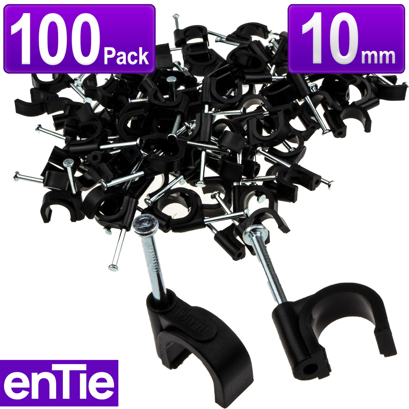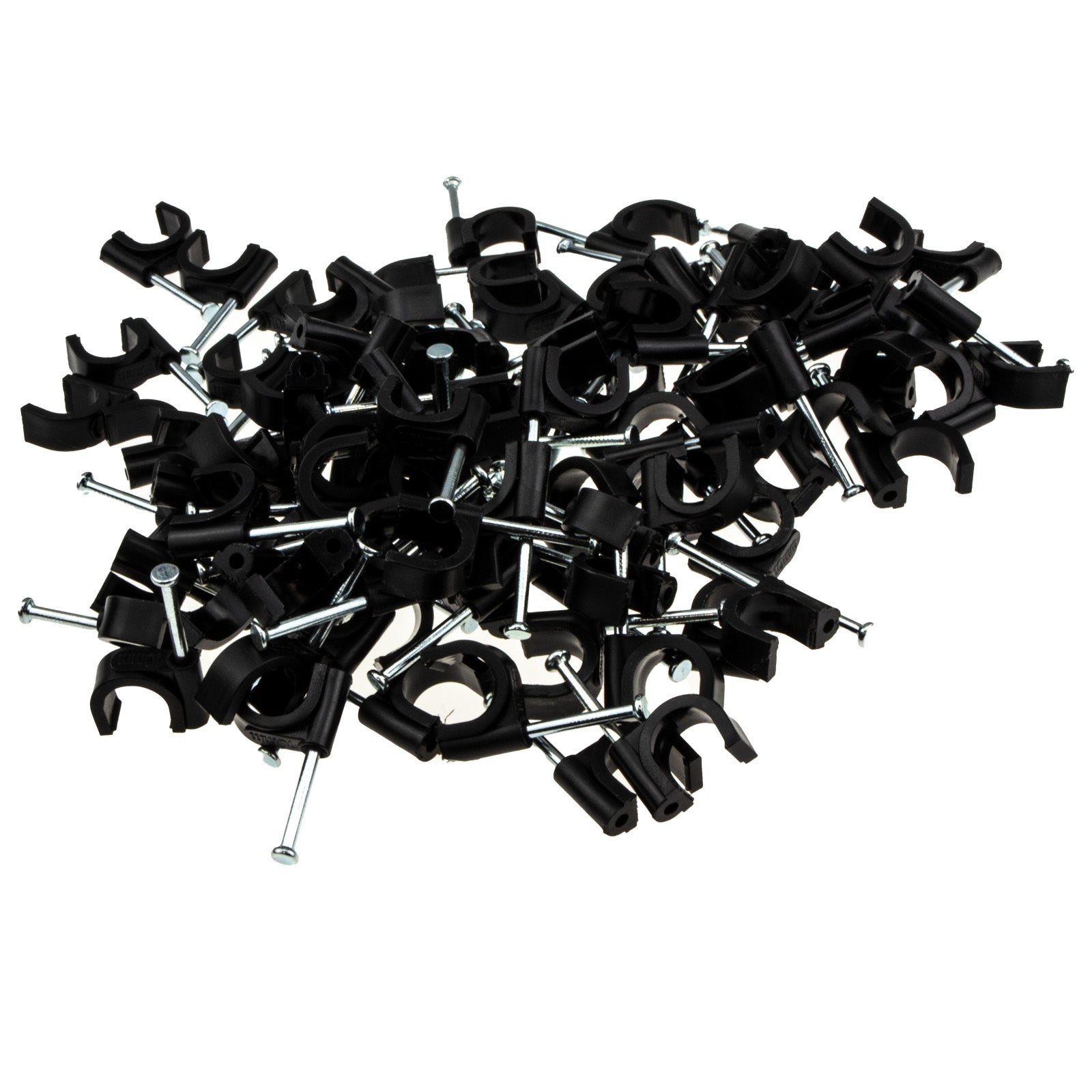 Round Black 6mm Cable Clips Secure Fastenings Cables [100 Pack]